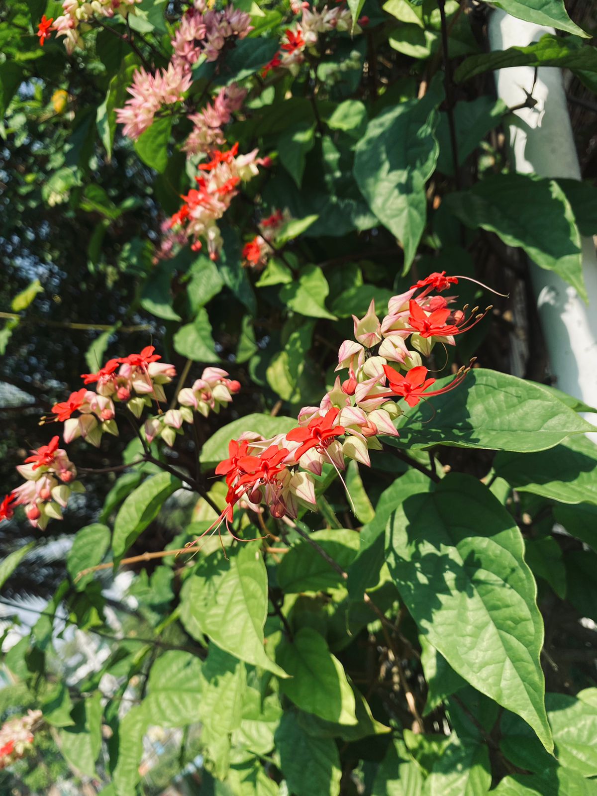 Clerodendrum thomsoniae dikenal pula sebagai Bleeding Heart Vine. Tanaman ini merupakan jenis tumbuhan rambat yang berasal dari Afrika. Daun dari tanaman ini berbentuk bundar telur dengan panjang 8-17 cm, ujung runcing dan tepi rata. Pembungaan paying menggarpu, keluar dari ujung ranting atau ketiak daun, terdiri atas 8-20 kuntum. Bunga berbentuk lonceng, mahkota berwarna putih, merah sampai keunguan. Tanaman ini memiliki buah batu, bulat, berwarn hitam dan berisi 2-4 biji | ||