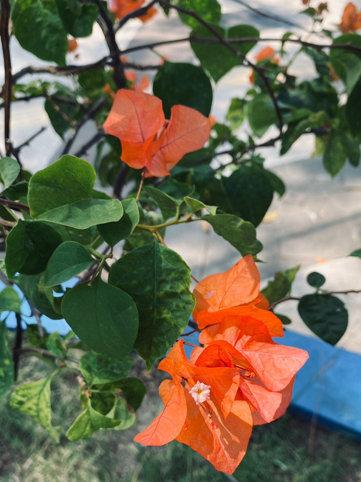 Deskripsi : Bunga Kertas (Bougainvillea glabra) adalah tanaman hias merambat atau semak berduri yang sangat populer di daerah tropis. Daunnya berbentuk bulat telur, berwarna hijau tua, dan tumbuh rapat di sepanjang batang berduri. Bunga sejatinya kecil dan berwarna putih kekuningan, namun dikelilingi oleh tiga braktea (daun pelindung) berwarna cerah seperti merah, ungu, jingga, pink, atau putih yang tampak seperti kelopak bunga kertas tipis. Tanaman ini tahan panas, mudah tumbuh, dan sering digunakan untuk mempercantik taman maupun pagar rumah.